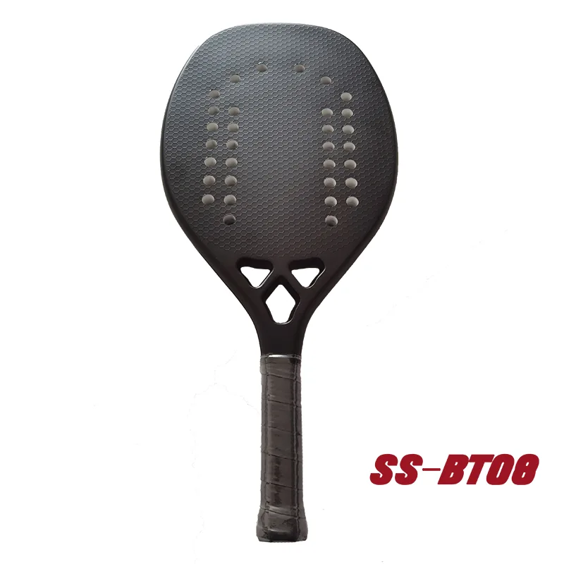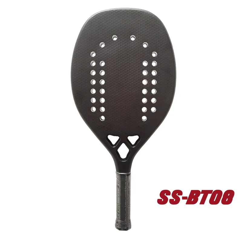 20 mm paplūdimio teniso raketėModelis SS-BT08 yra anglies dvideginio raketė. Standartinio SS-PR01 veido medžiaga yra anglies pluoštas, rėmo medžiaga yra anglies pluoštas, o EVA atminties šerdis. Anglis plačiai naudojama padelio raketėje, anglis yra vieno mezgimo, stipriai atspari, patvaresnė nei stiklo pluoštas.